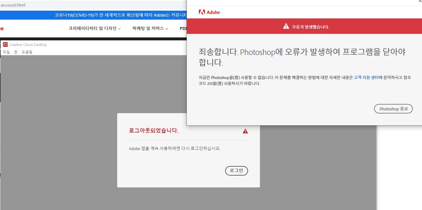 포토샵만 안켜지는 오류 코드 213 Photoshop crashing issue (Code 213)