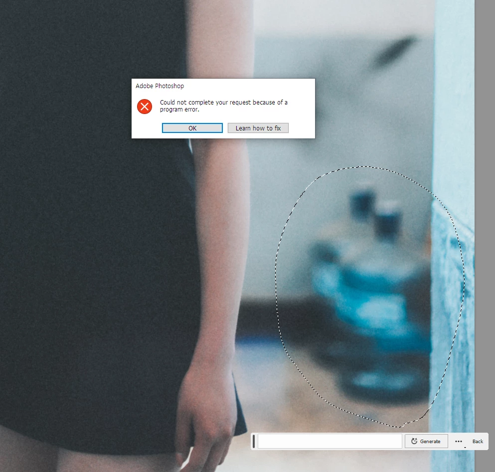 generative fill이 작동하지 않습니다.