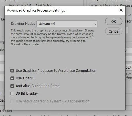 I'm also attaching a couple of screenshots of my performance tab in "Preferences".