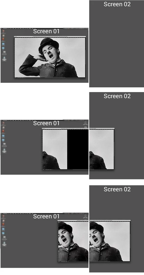 since the CC 2017 update, when i move an image even only slightly to my second monitor it gets shifted. see example images below. it shows only the part of the images wich is on the second monitor, the rest is black. if i move the image deeper in the second monitor, it shows tow equal parts of the images on both monitors.
