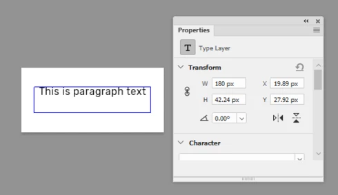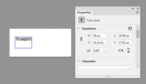 Before PS v21 update size of paragraph box was changing correctly in properties panel, now it started distorting text inside.