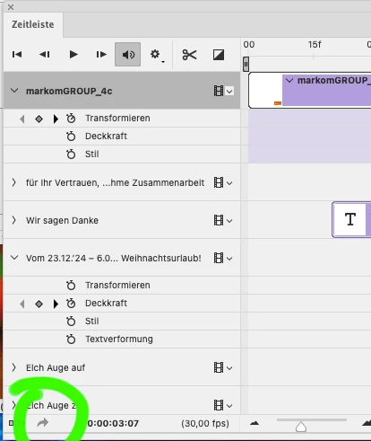 Seit dem letzten Photoshop Update auf Version 26.30 kann ich keine Animationen/Videos mehr direkt aus der Zeitleiste exportieren, da der Button (Pfeil) ausgegraut ist sondern muss über jetzt über Datei --> Exportieren --> Video rendern.