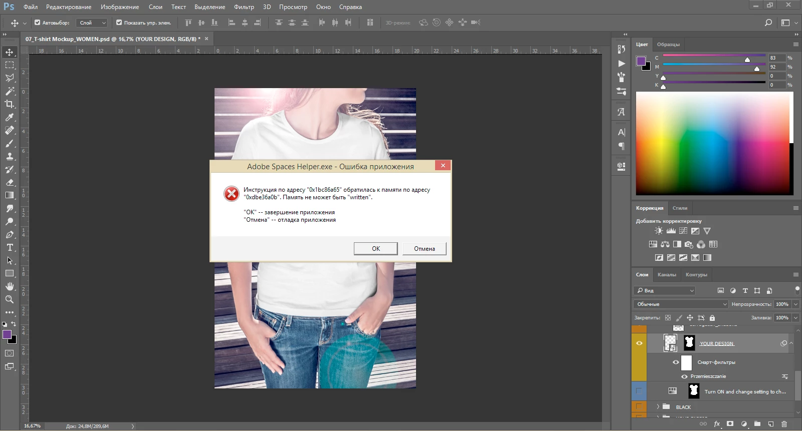 При редактировании смарт-объекта с ранее примененным фильтром "смещение" возникают подобные ошибки. Некоторые старые файлы и новые редактируются без проблем. В чем может быть дело?