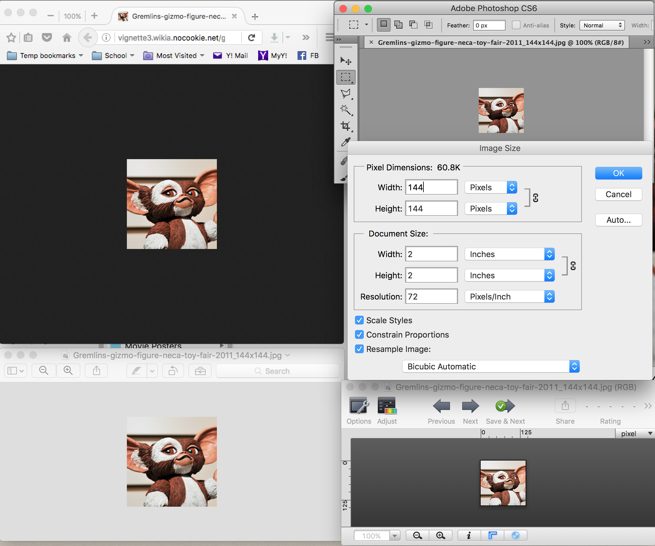 Upper right: Photoshop CS6 — 0.65 inches across.Lower right: GraphicConverter 9 — 0.65 inches across.