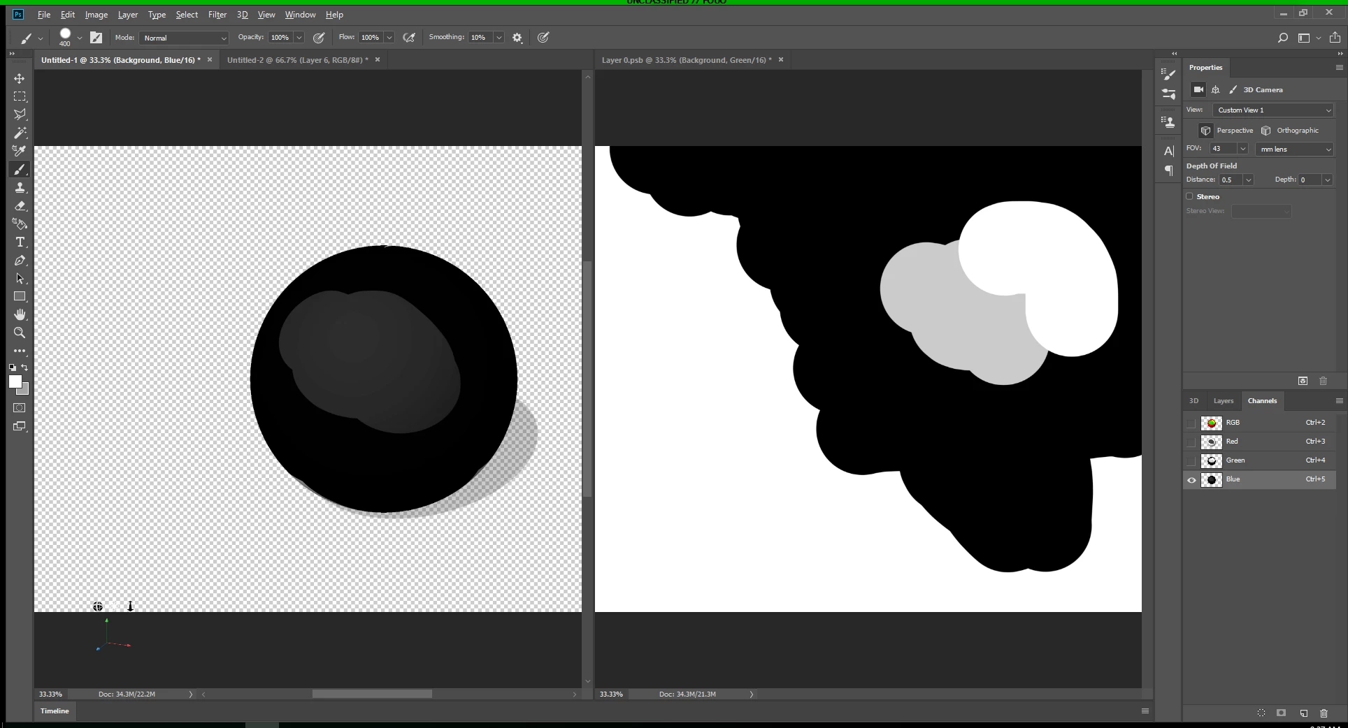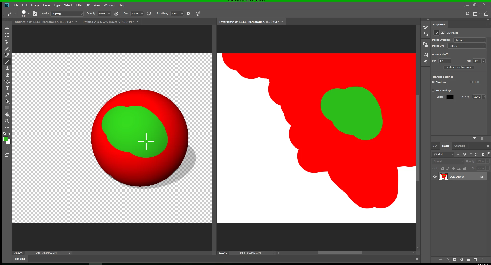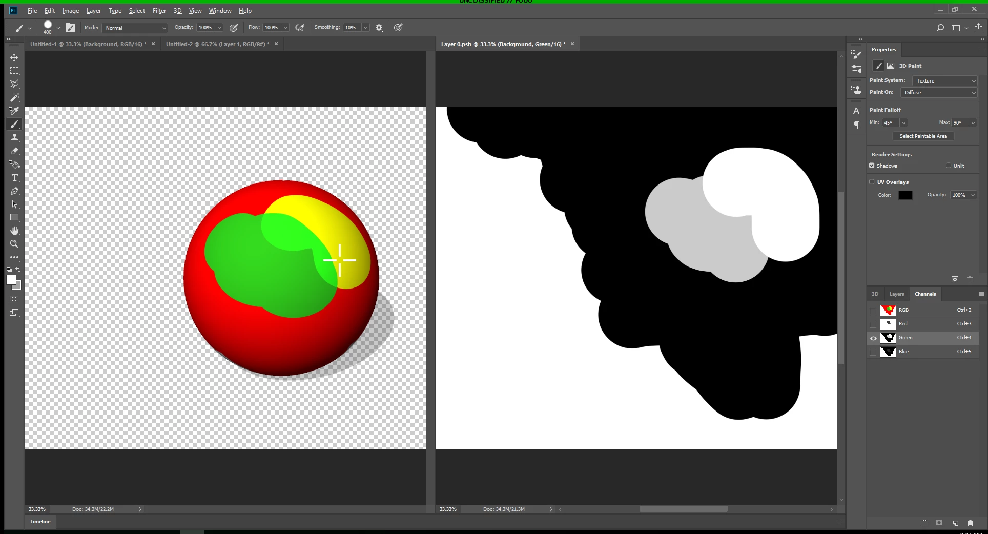 3. I can paint on the Texture's Green Channel and the 3D Model updates.