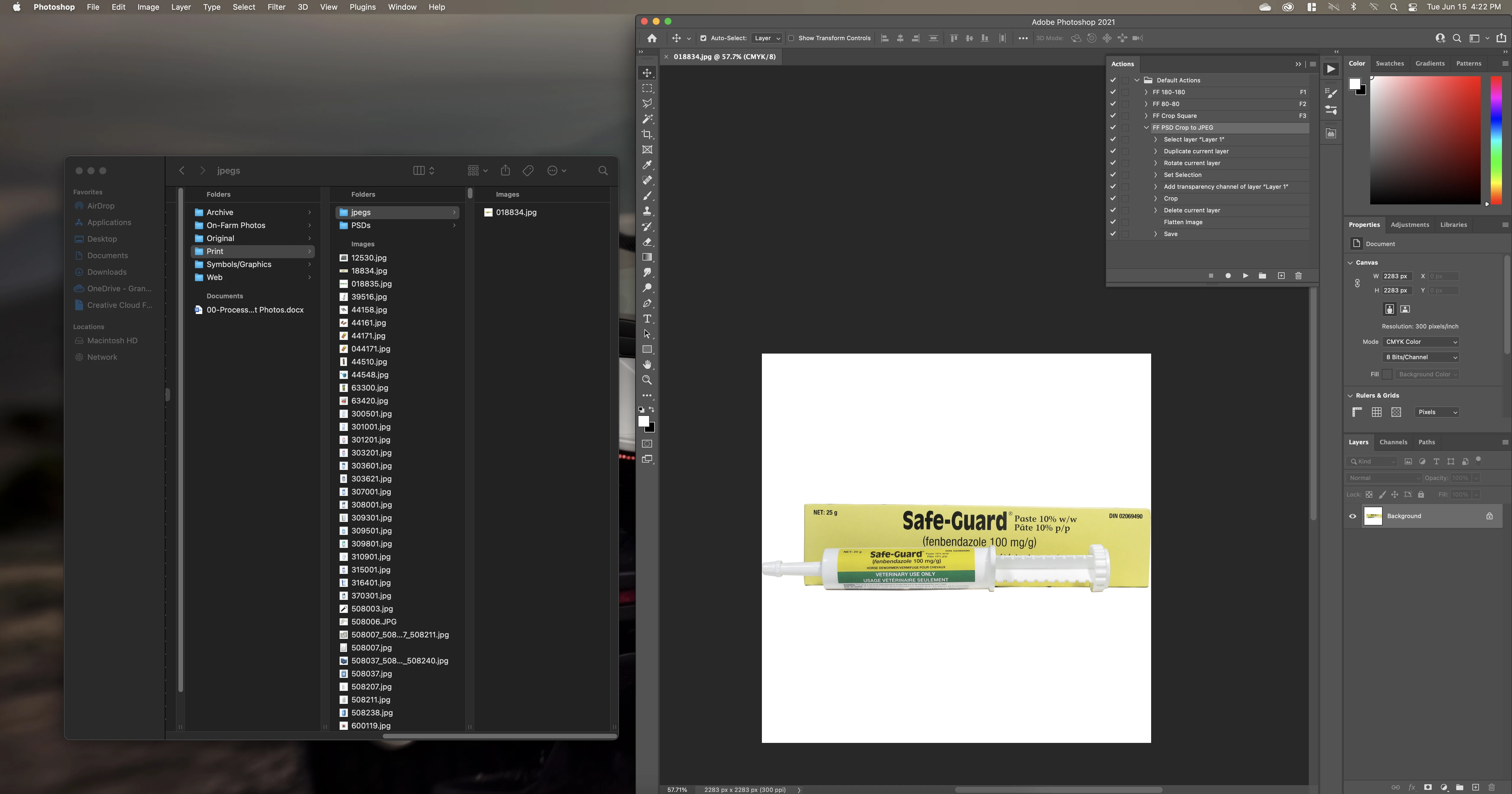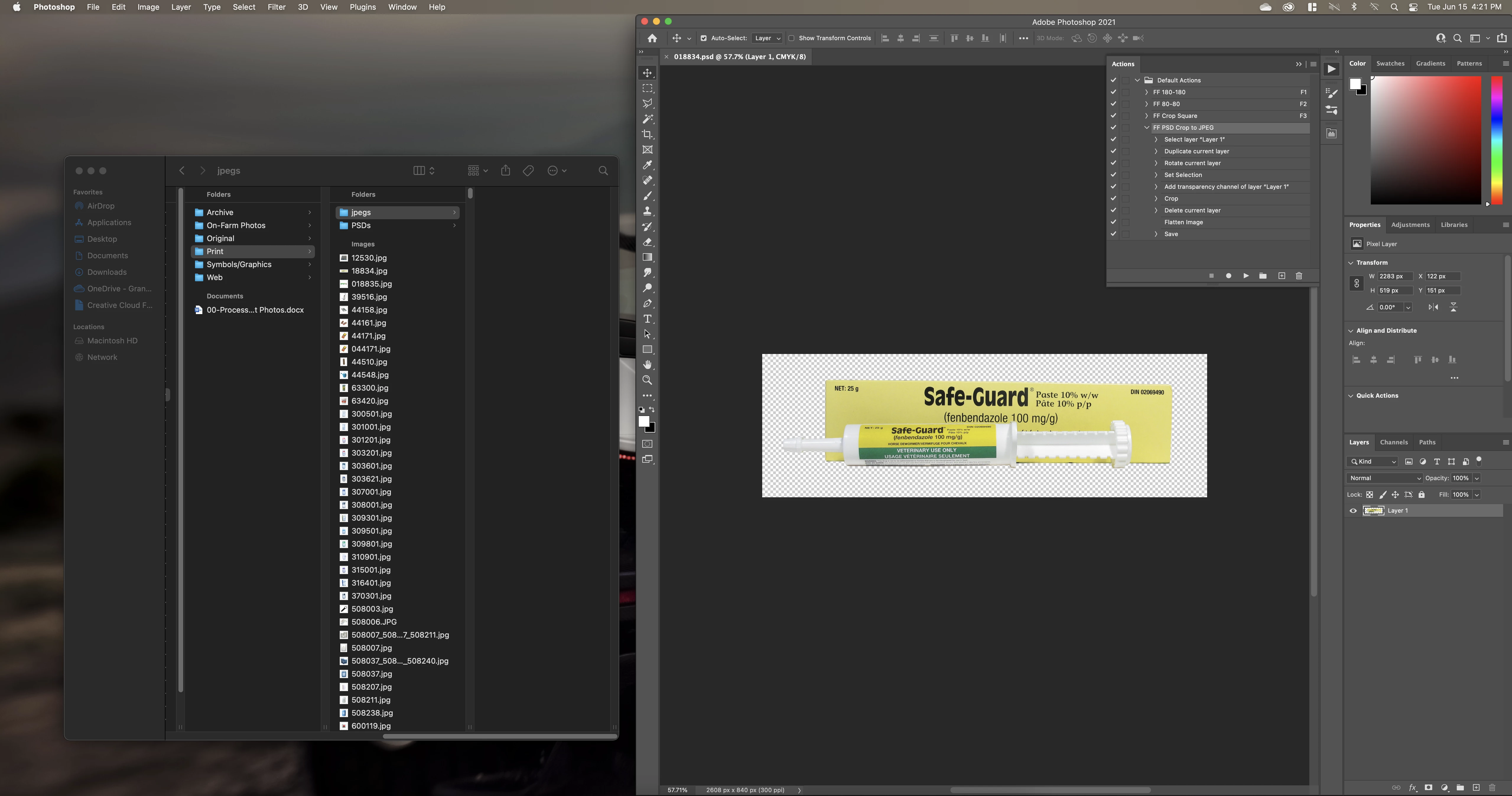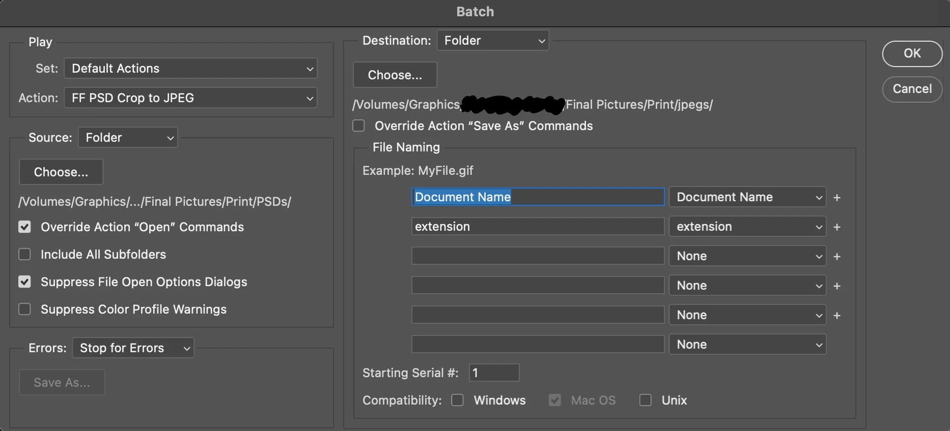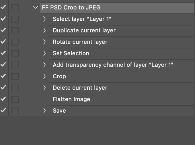 I've created an Action that I'm using to open a folder of PSD files, crop them square, and save as a JPEG.