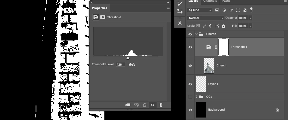 Adjustment Threshold Layer clipped to layer producing grayscale values
