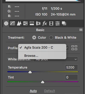 When I open a CR2 file in Photoshop RAW, the default profile is Agfa Scala 200, and not Adobe Color. Adobe Color doesnt actually show up in the browser either, so I can't change it at all.