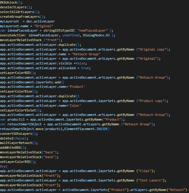 This script uses a mixutre of Adobe Photoshop's DOM and action manager.