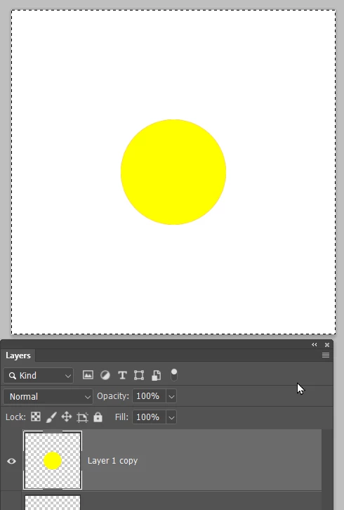 One layer selected and the entire canvas selected (Ctrl A /Cmd A)