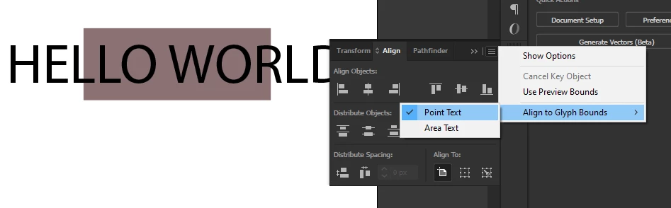 Aligning Text in Photoshop without the bounding box