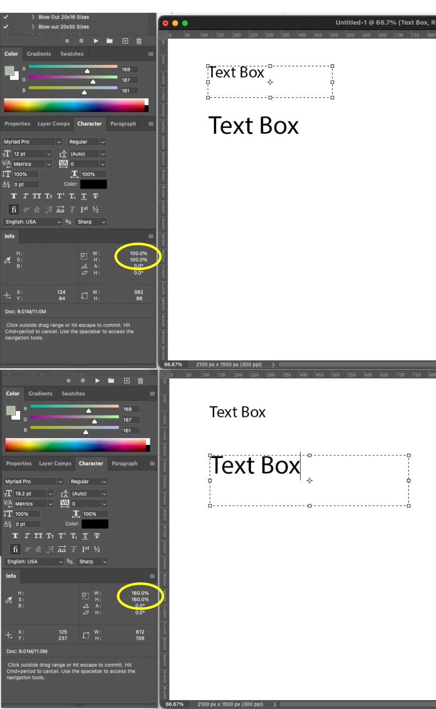 I am trying to find a solution that will reset the scale percentage of a text box after a transformation or image resize. I have a layout that needs to be rolled out to many different sizes and after I take it through all of the image size commands, the scale of the text boxes in all of the files shows the reduction or enlargement value in the info palette.