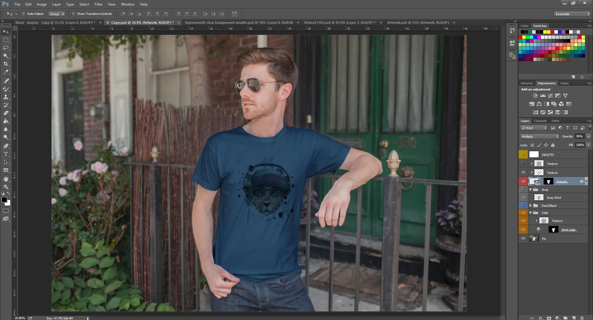 I am using a photoshop t-shirt mock up template. But the layer that is meant for putting the artwork is being "covered" by other layers.