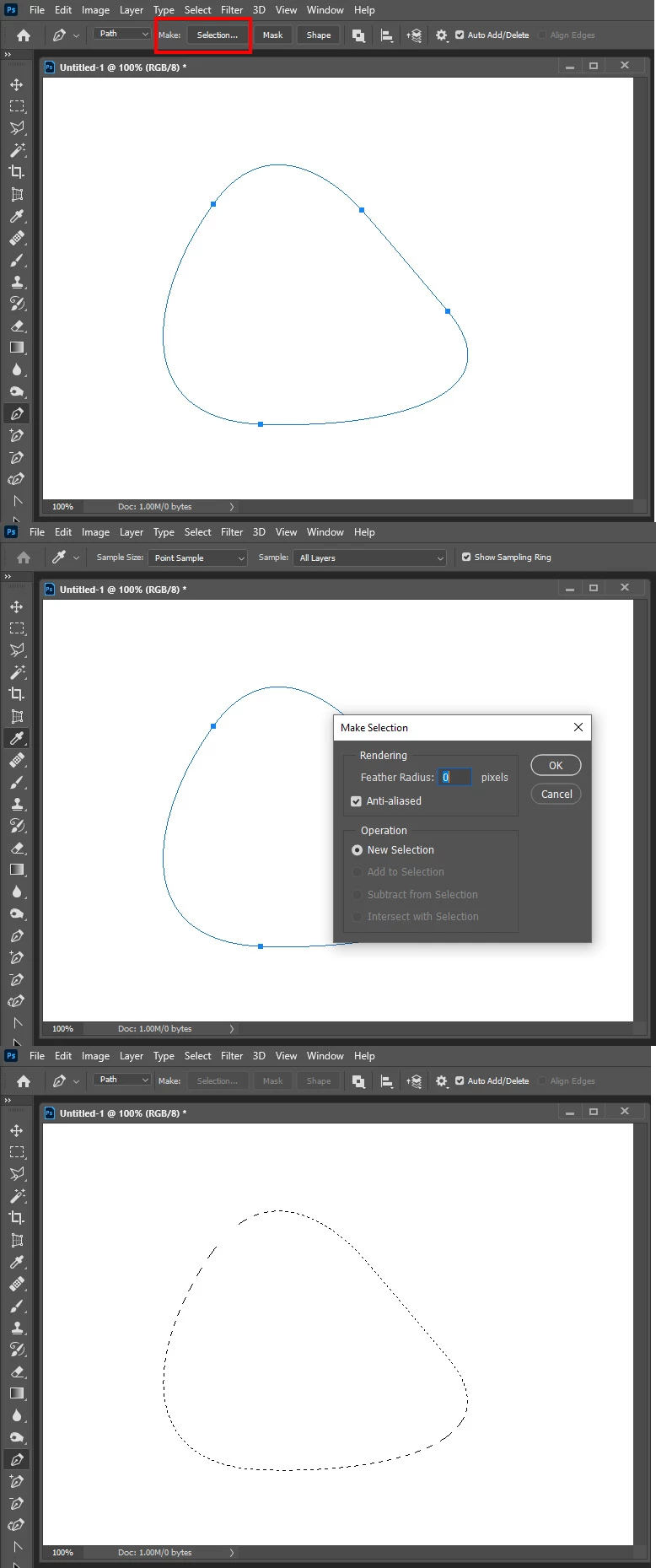 PS I used the pen tool for the first time, usually use selection tool. Is there a way with pen to create a selection rather than vector?