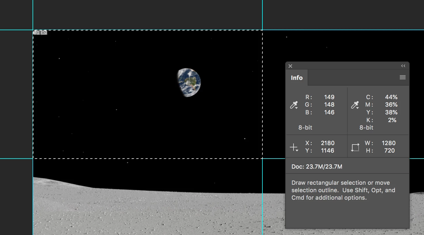 • Draw a rectangular marquee across one section. Check the size in the info panel.