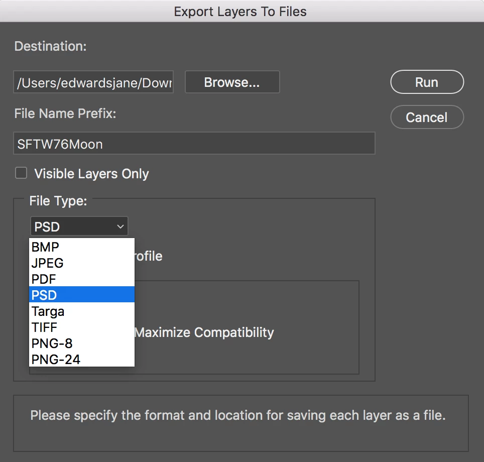 • File > Export > Layers to Files