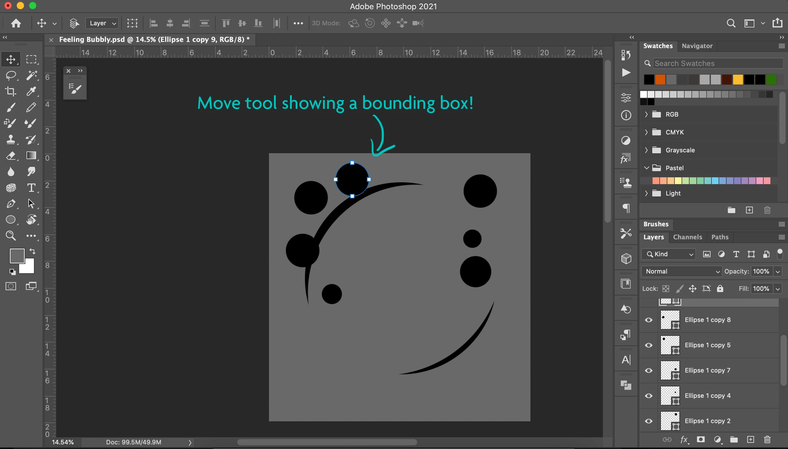 2 - If I'm on a shape layer, usually with the move tool I don't see the path outline or a bounding box - just the "image". Now there is a bounding box (without reference point).
