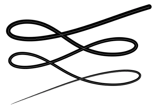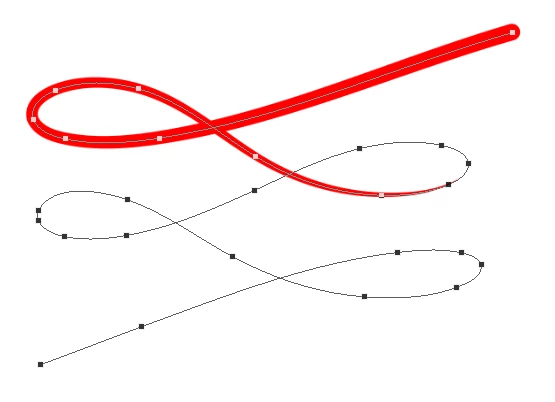 You also have the option of Stroking with the brush size jitter set to Fade. This used a value of 1200, with spacing set to the default 25% (fade works with each stamp down of the brush, so brush spacing set to 10% would only stretch to 2/5ths of the path as in the red line example.