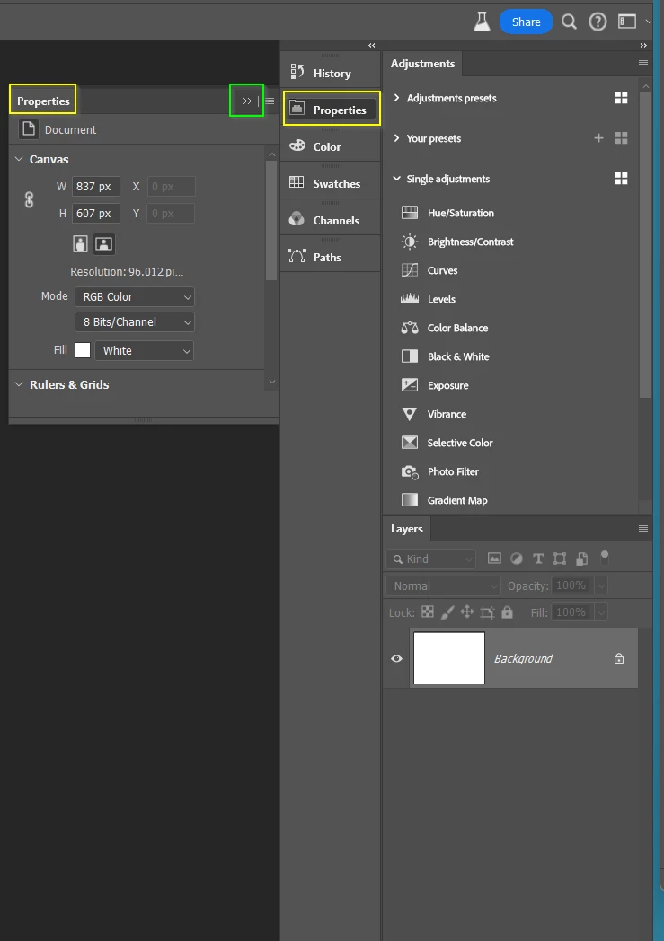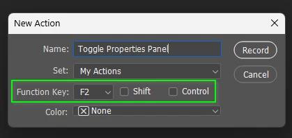 Properties would open automatically when you start some functions like the new gradient tool, and you can click to close when done.
