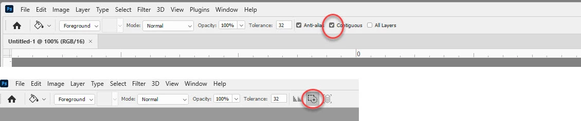 can't make paint bucket non-contiguous in Photosho v21.2.4