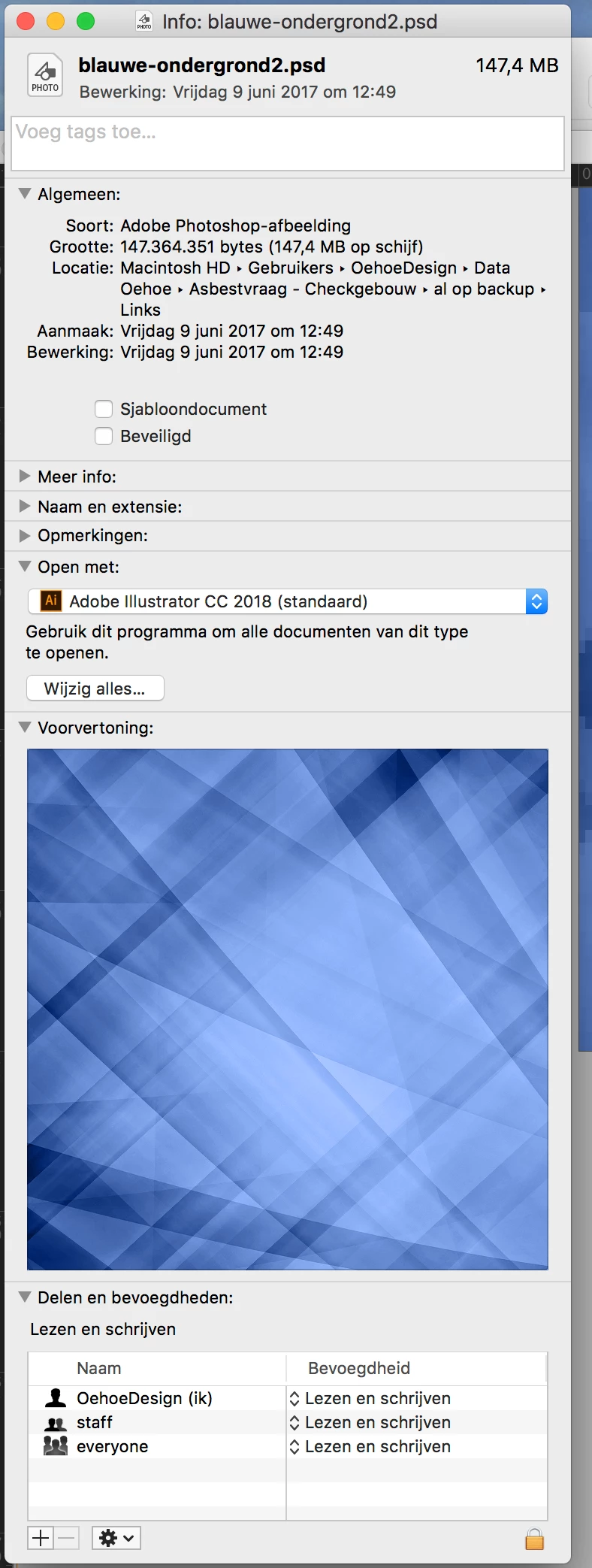 It recognizes the file extension .psd in this example. At "soort" (kind of image) it also shows Adobe photoshop. But as a default it opens this file for some reason in Adobe Illustrator.