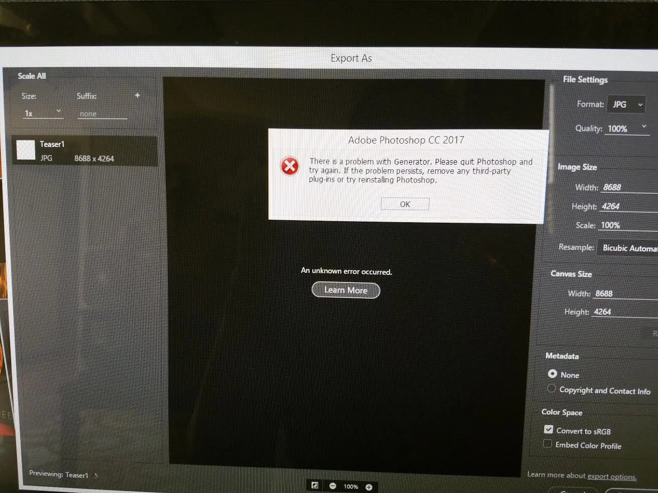 Half of the time I cannot save photos because I will receive an error stating there is a problem with the generator. I've restarted my computer. I uninstalled it last week and it worked for around 24 hours before it showed up again. This keeps delaying my work so I would appreciate any help I can receive.
