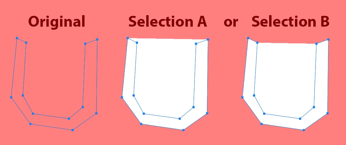 I want to make a selection like the one shown in the figure from a pathItem of type "U".