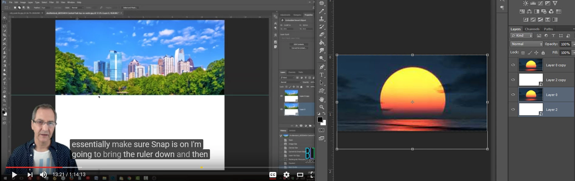 I am doing a tutorial on water reflection. There is a slight variation in menu selection between the Photoshop version that I have that I have worked around. Image on the right (sunset) is gray at bottom; tutorial image (left) is white?