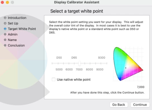 3. Calibrate followed by the steps: select the wanted white point