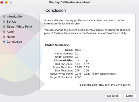 Otherwise, I just don't understand why until Step 3, color, white point were displaying perfect, just after Step 4 clicking "Done", all color gones, but the calibrated white point takes effect.