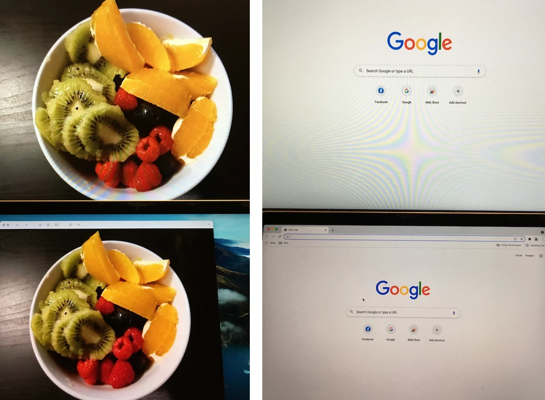 Left: After applying the color profile, the color is vivid on the bottom (Macbook) screen.