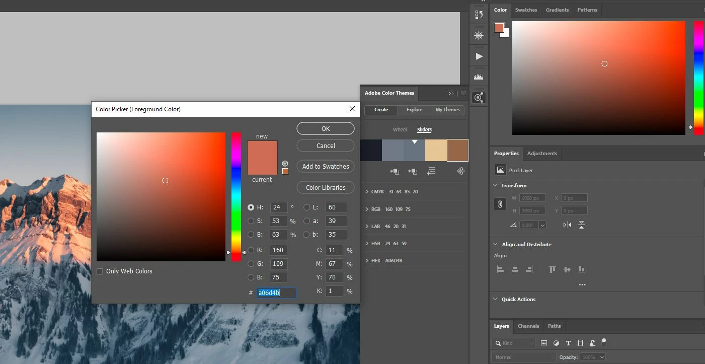 Colors between Adobe Color Picker and Adobe Color Themes doesn't look the same (Photoshop)