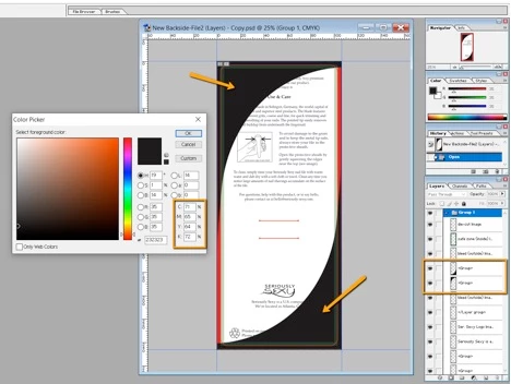 So, my client requires me to send the back of a packaging product in a PSD file with all layers attacted, however, when I send over the file, we found that the colors of the corners look completely different even though the color picker shows the exact same values. I have the newest Photoshop version and he has Photoshop 7.0 version. I have no filters on my end of the corners and the opacity is 100%. I've also made the file "Maximum Compatibility" before I saved it.