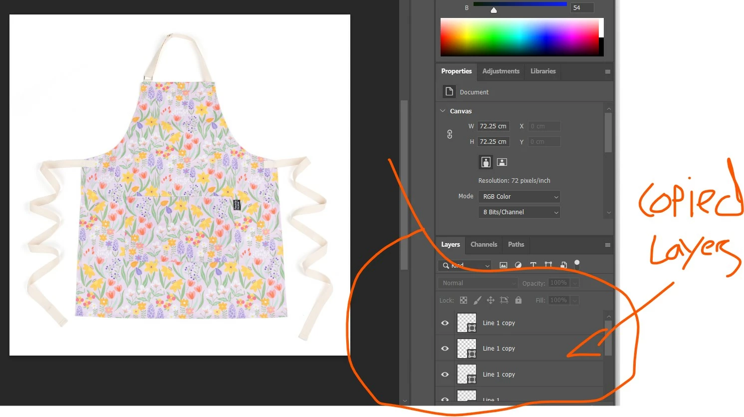When I copy those layers to the Apron in the bottom screeshot (Spring Flowers) , nothing happens