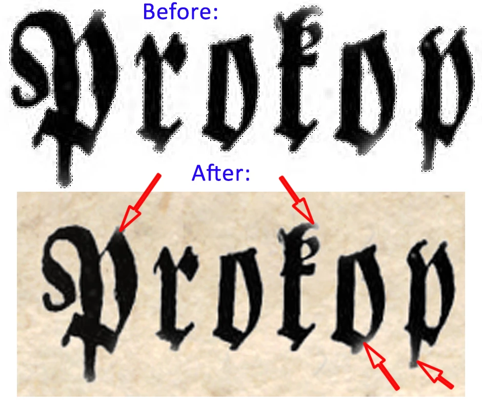 Of course, now I got the original white background shining through at the letters' edges (indicated by the arrows). What are the standard methods to avoid this?