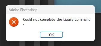 Since the last update, I'm encountering the error "Could not complete the liquify command". This happened multiple times today while I was working so every time I had to restart Photoshop. What should I do? Thanks.