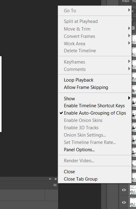 When I try to get the frames into the timeline I click on the three lines as instructed. I get a very different menu from the ones shown in all the video tutorials. I get this: