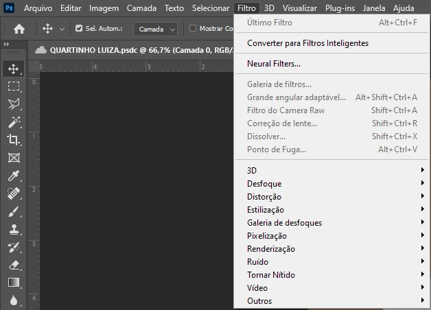Após eu fazer a atualização do aplicativo para a mais nova versão, 23.3, eu não estou conseguindo acessar algumas ferramentas do Photoshop, como por exemplo salvar o arquivo ou utilizar o filtro de camera raw. Alguém sabe como consigo solucionar esse problema?