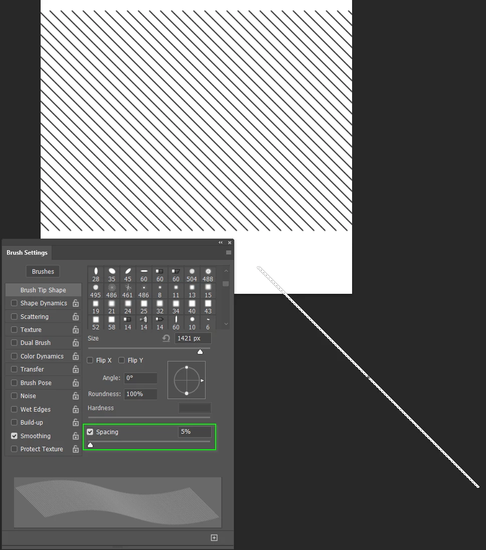 Im trying to create diagonal lines using the brush tool without using the shift and click method. I would really love to just be able to draw them useing the same method i can create vertical and hortizontal lines! I've seen other artists do this so i know its somehow possible!