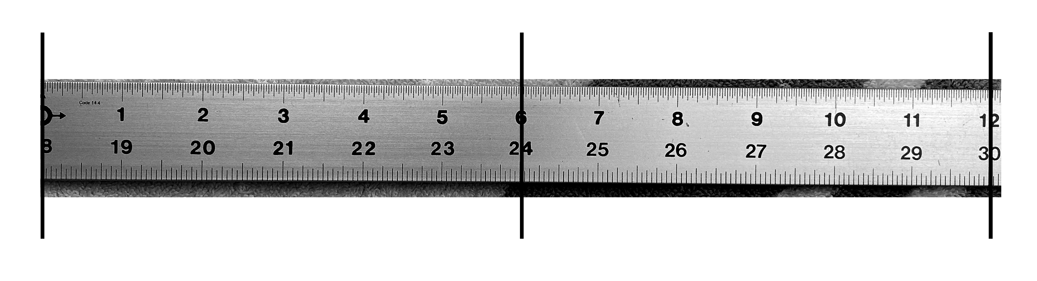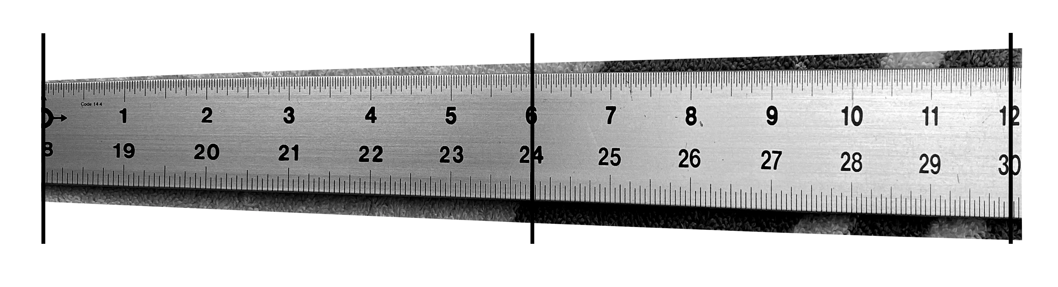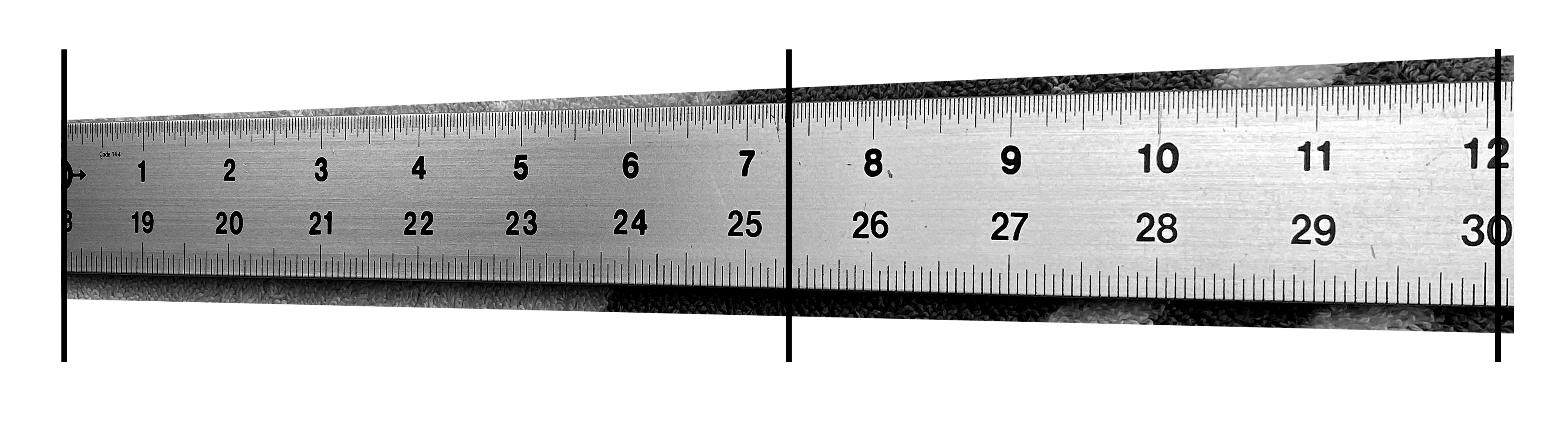 I'm trying to distort a raster image similar to a ruler. I've included lines over the ends of the ruler as well as the center point for illustration, they are not part of the ruler.