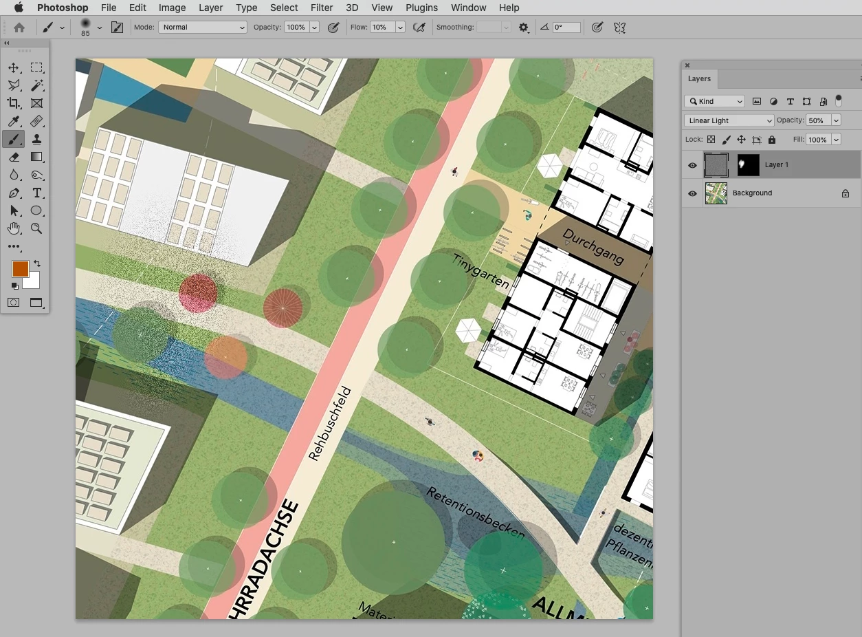 Is there a easy way to do this with a pattern or brush or anything like this? I tried to make my own pattern but i am not able to do this seasmless. The size of the siteplan is so big that i cant work with a random PNG file because you can see all the edges when its not seamless.