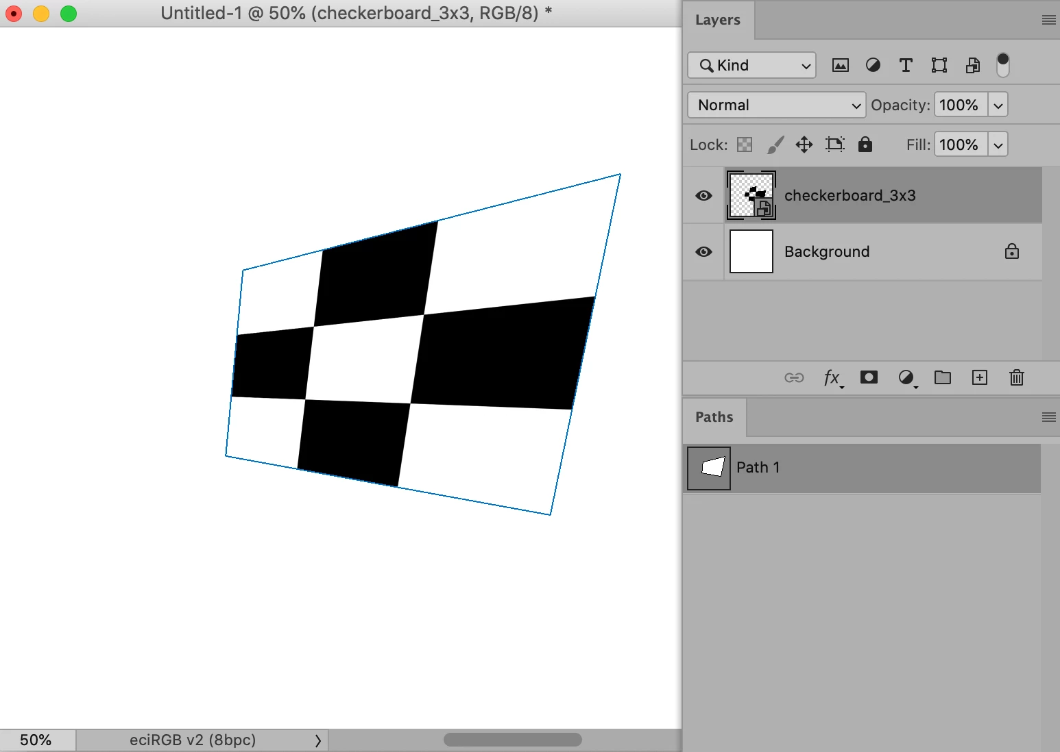 // transforms the selected layer according to the selected or topmost path in the paths panel;