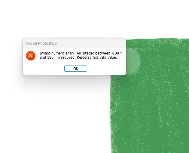 "Invalid numeric entry. An integer between -180 degree and 180 degree is required. Restored last valid value."