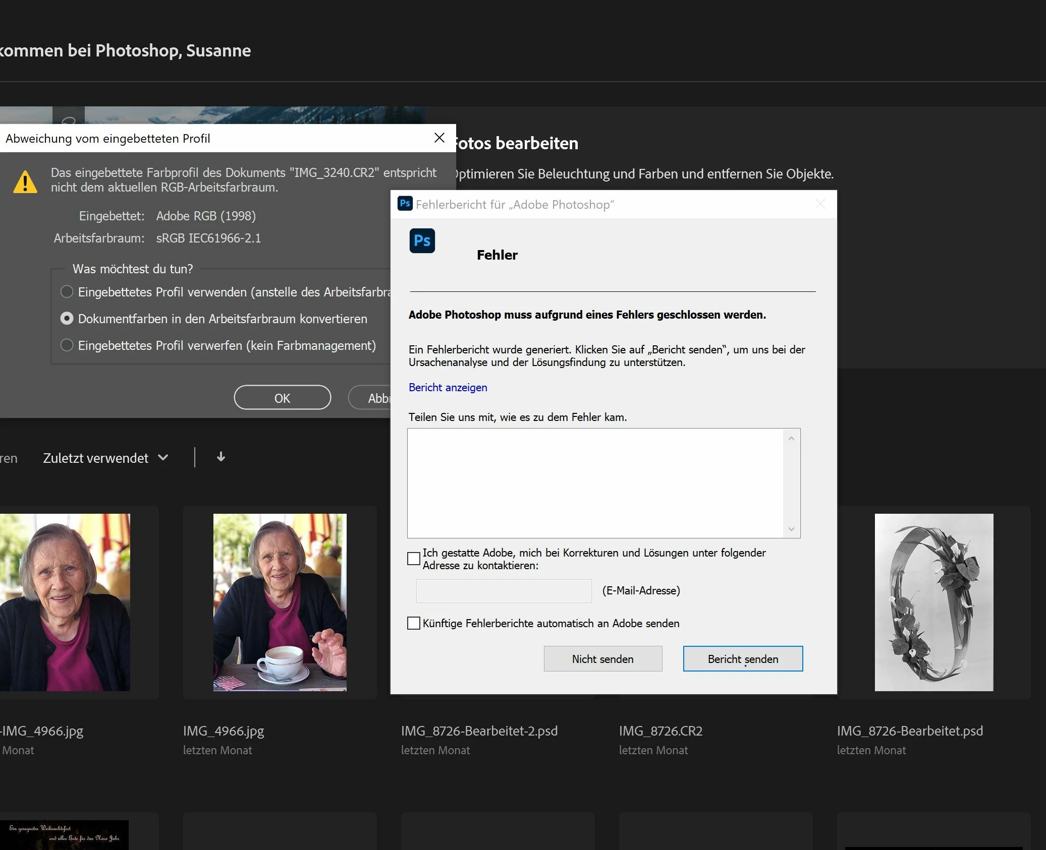 When I want to transfer a picture from Lightroom CLASSIC to Photoshop I do get the error message as shown in the screen shot below and Photoshop closes down.