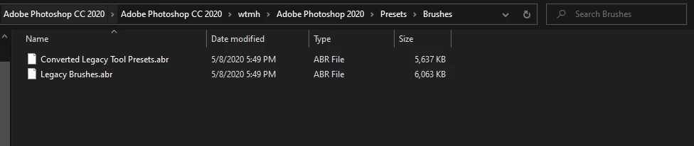 Finding/Saving Installed Brush Files PS 2020 Windows 10