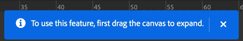 Hello. As I try to use the new Generative Expand function, I get the following message (attached): "To use this feature, first drag the canvas to expand." I'm calling this a "bug" because 1.- it makes no sense at all "first drag the canvas to expand" what does that even mean? – and 2.- because there is no further explanation, tutorial, click here to see more", etc. I tried dragging the canvas (the way I understand that) but the nonesense message keeps popping up (please consider getting some English Major to create these pop-up messages. Software Engineers... well, only they can understand themselves.) Ideas? Guidance? Thank you in advance. A.C.