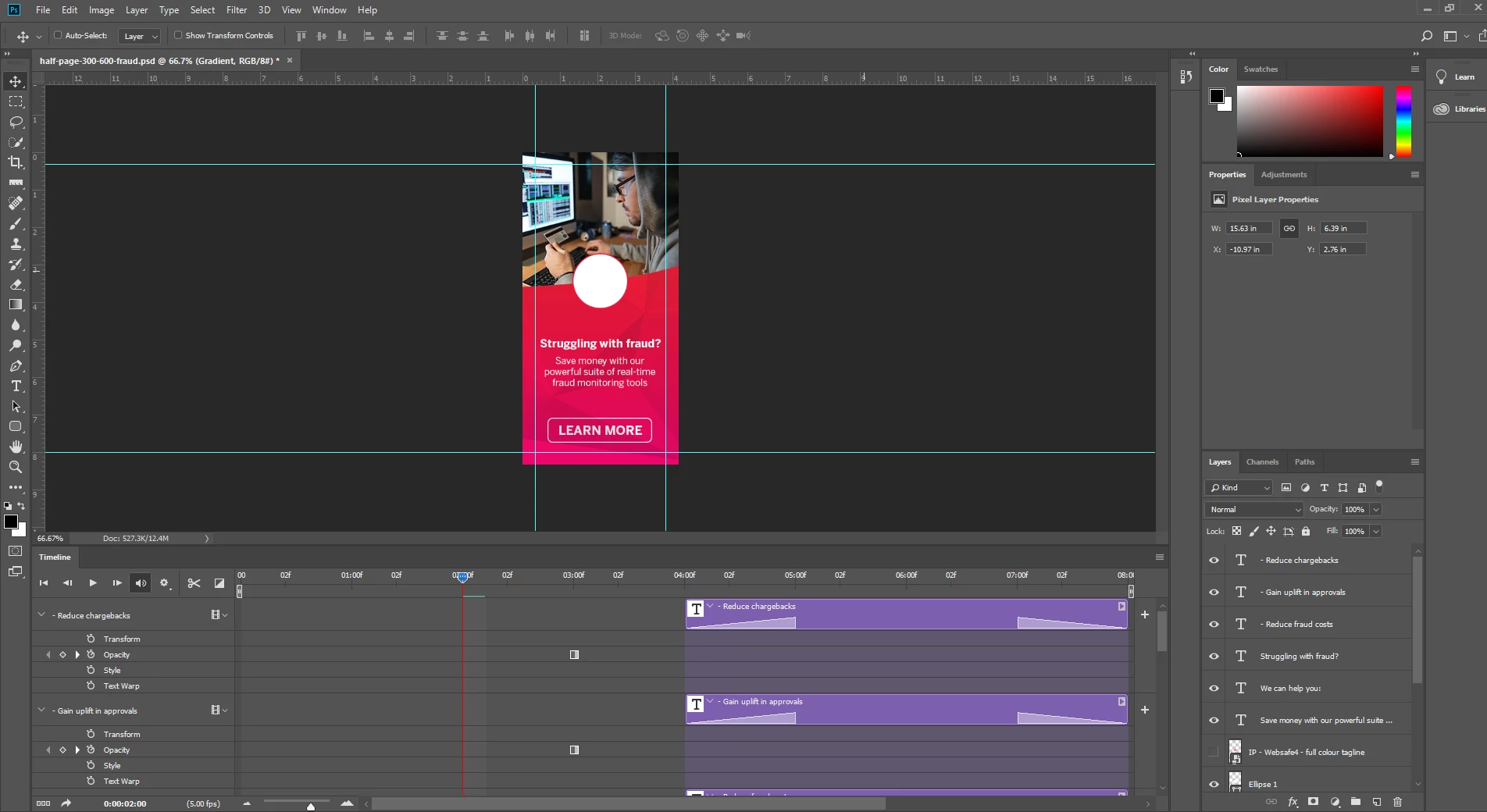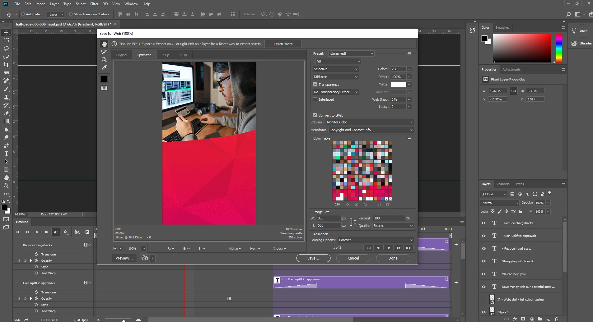 I'm trying to export a GIF to be used on Google Ads for some of our display advertising, but I can't seem to get it to render properly. It plays fine in my preview, with text fading in after a slight delay. However when I export the file it just fails to load several layers.