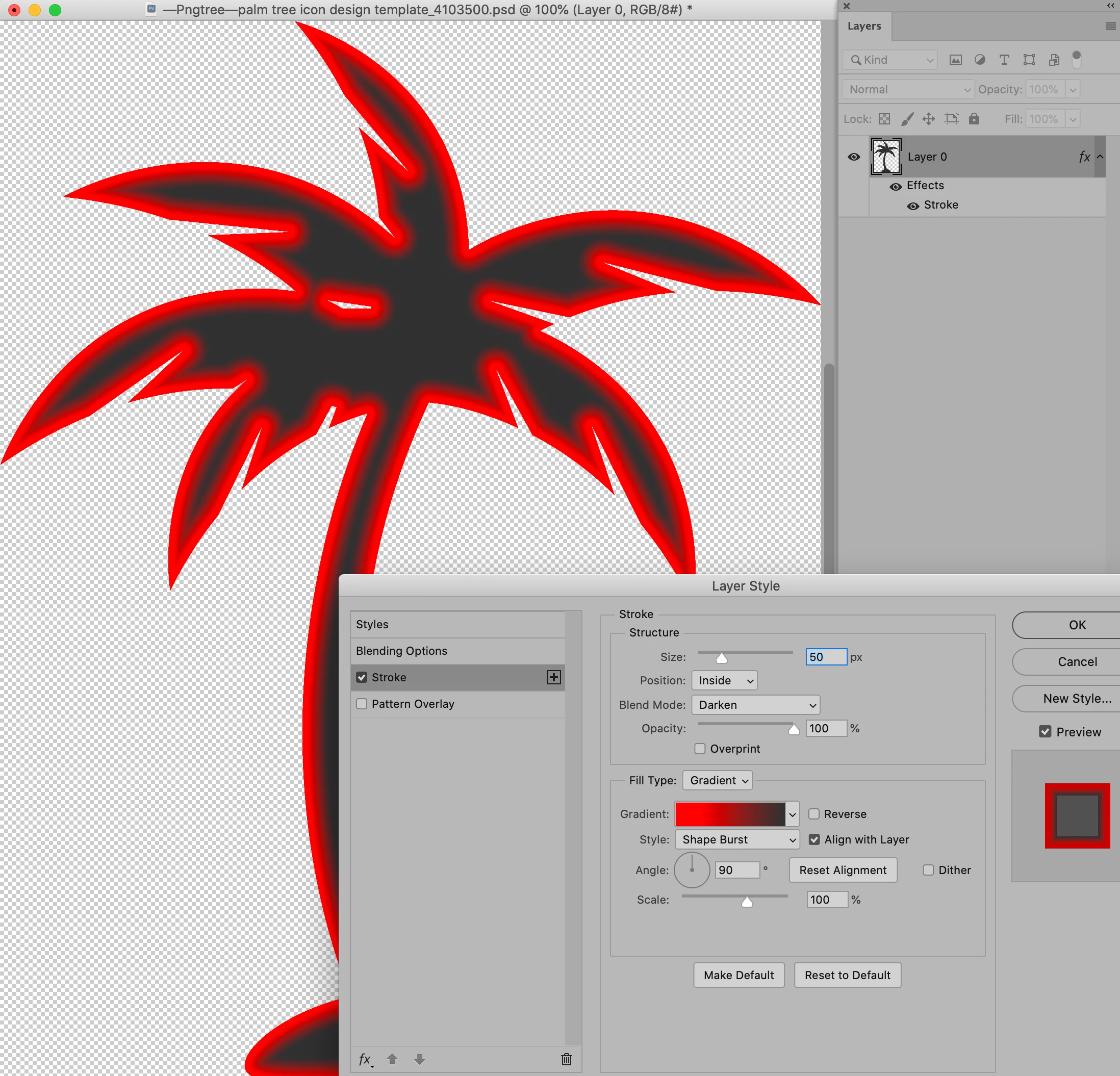 i wish to get a reddish effect at the border of this palm: