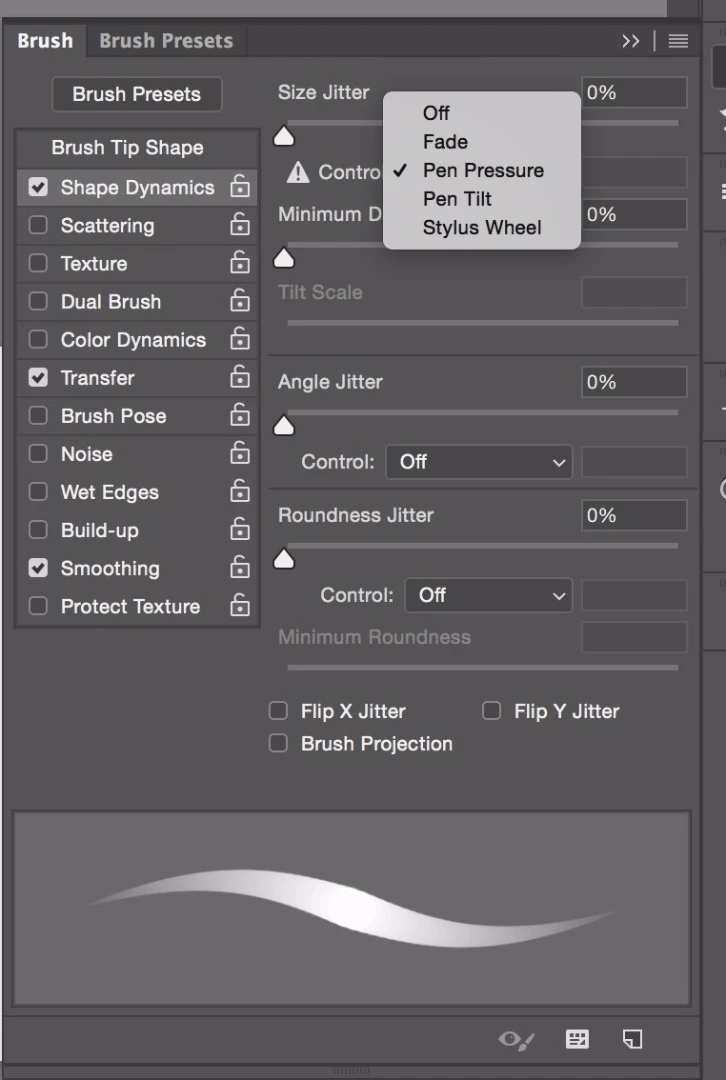I tried using a brush preset that would start thin, become thick and finally go back to thin. However, the thickness stays the same, like the Marke pen's drawing effect. You can see in the highlighted portion of the screen how it should look. Can anyone tell why it's coming out this way?