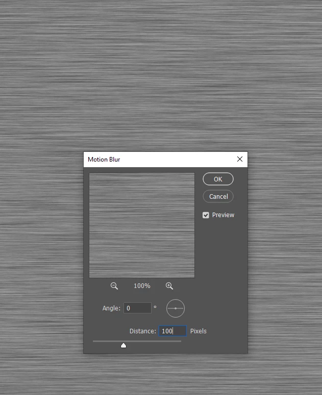 Now add motion blur. You'll need to use your judgement here but 100 at 0° worked for me